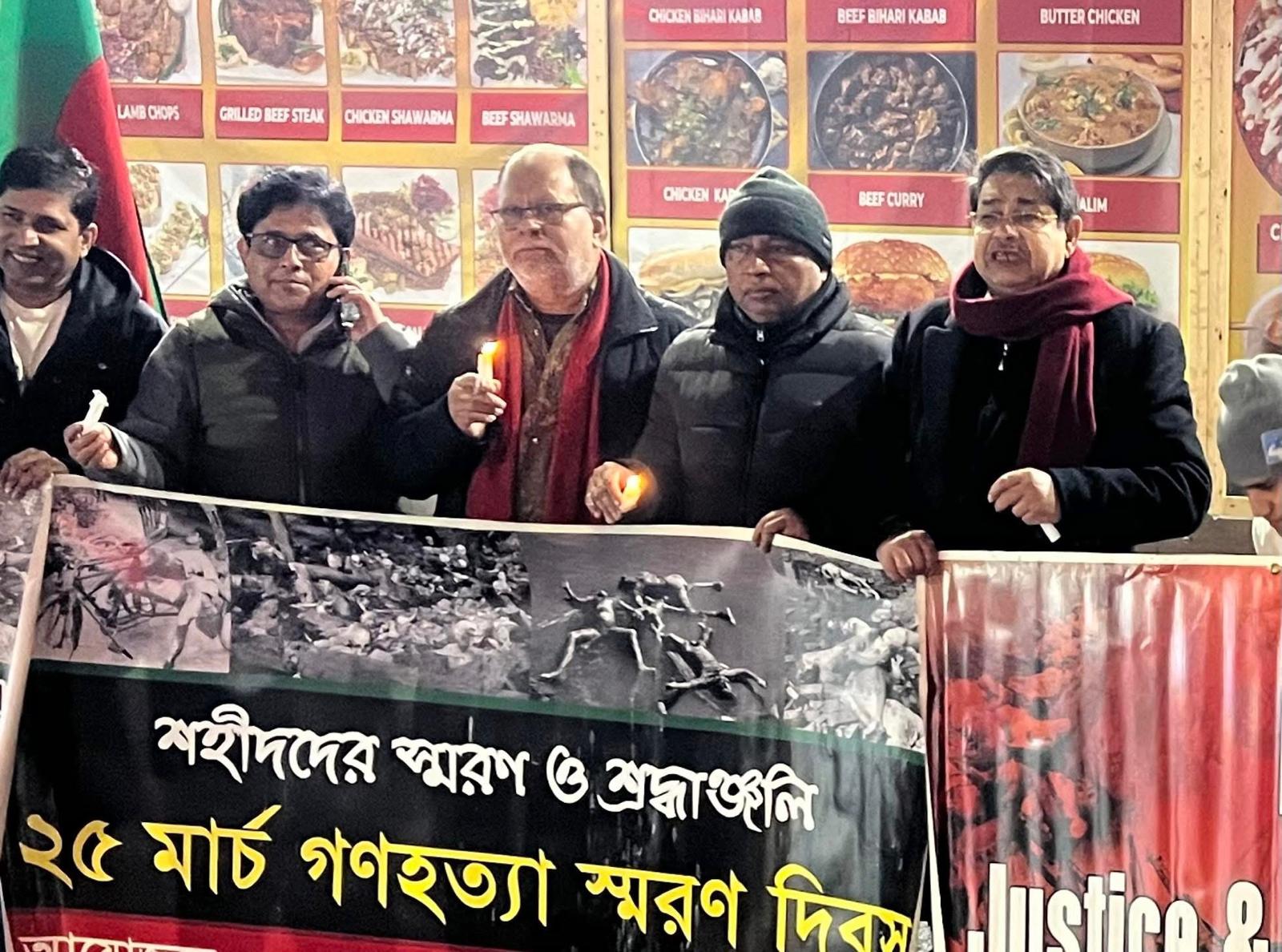 ১৯৭১ সালের ২৫শে মার্চের গনহত্যা দিবস স্মরণে পঁচিশে মার্চের প্রথম প্রহরে নিউইয়র্কের জ্যাকসন হাইট্সের ডাইভার সিটিতে এক স্মরণ সভা অনুষ্ঠিত হয় ।মমবাতি প্রজ্বলন করে একাত্তরের শহীদদের স্মৃতির প্রতি শ্রদ্ধাঞ্জলি জানানোর মধ্য দিয়ে সভার কাজ শুরু হয়।