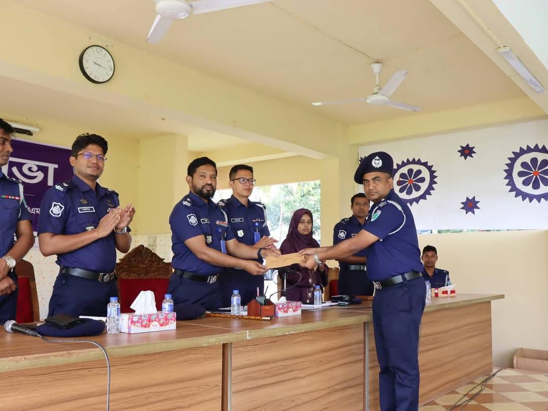 বৃহস্পতিবার সকালে মৌলভীবাজার পুলিশ লাইনসে মাসিক কল্যাণ সভায় মার্চ/২০২৫ইং মাসে মামলা নিস্পত্তি, গ্রেপ্তারী পরোয়ানা তামিল, আসামী গ্রেপ্তার, থানা এলাকার আইনশৃঙ্খলা পরিস্থিতি রক্ষায় বিশেষ অবদান রাখায় মৌলভীবাজার পুলিশ সুপার এম, কে, এইচ জাহাঙ্গীর হোসেন, পিপিএম-সেবা শ্রীমঙ্গল থানাকে শ্রেষ্ঠ থানা ঘোষণা করে এবং থানা ইনচার্জ মোঃ আমিনুল ইসলামের হাতে নগদ অর্থ পুরস্কার তুলে দেন।
