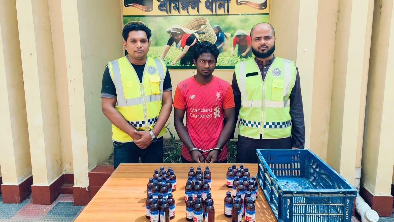 মৌলভীবাজারের শ্রীমঙ্গল থানা পুলিশের অভিযানে ৪৫(পঁয়তাল্লিশ) বোতল ভারতীয় আমদানী নিষিদ্ধ কোডিন ESkuf সহ আটক ১ জন।