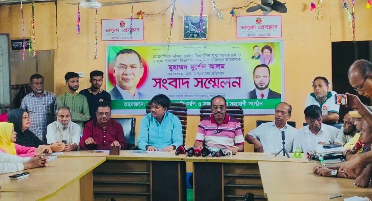 ময়মনসিংহের ভালুকায় ময়মনসিংহ দক্ষিণ জেলা বিএনপির যুগ্ম আহবায়ক ও ভালুকা উপজেলা বিএনপির ভারপ্রাপ্ত আহবায়ক আলহাজ্ব মুহাম্মদ মোর্শেদ আলমের বিরুদ্ধে মিথ্যা অপপ্রচারের প্রতিবাদে সংবাদ সম্মেলন অনুষ্ঠিত হয়েছে।