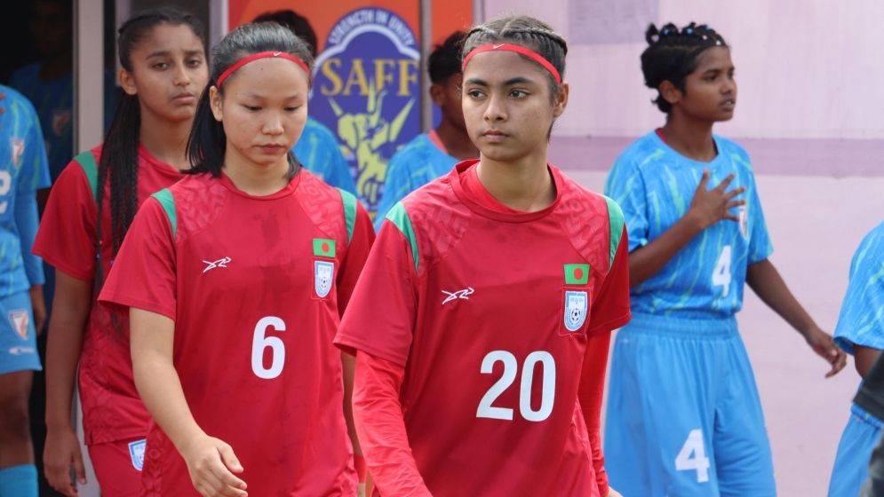সাফ অনূর্ধ্ব-১৭ নারী চ্যাম্পিয়নশিপে ভুটানকে ৩-১ গোলে হারিয়ে দারুণ সূচনা করেছিল বাংলাদেশ। কিন্তু দ্বিতীয় ম্যাচে ভারতের বিপক্ষে হোঁচট খেয়েছে মেয়েরা। শুক্রবার চ্যাংলিমিথান স্টেডিয়ামে প্রতিবেশিদের কাছে ২-০ গোলে হেরেছে লাল-সবুজের প্রতিনিধিরা।