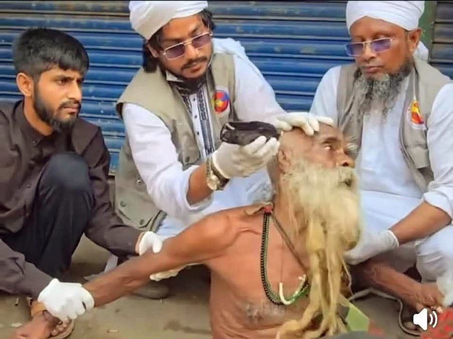 মামলায় ‘হিউম্যান সার্ভিস বাংলাদেশ’ নামের সংগঠনের একাধিক দায়িত্বশীল ব্যক্তি এবং স্থানীয় সহযোগীদের আসামি করা হয়েছে। তবে তদন্তের স্বার্থে আসামিদের নাম প্রকাশ করা হয়নি। কোরবানির ঈদের আগে উপজেলার কাশিগঞ্জ বাজারে হালিম উদ্দিন আকন্দকে কয়েকজন ব্যক্তি ধরে চুল-দাড়ি কেটে দেয়। ঘটনার সময় বৃদ্ধ বারবার প্রতিরোধের চেষ্টা করলেও ব্যর্থ হন। অসহায় অবস্থায় তিনি কেঁদে উঠেছিলেন— “আল্লাহ, তুই দেহিস।”