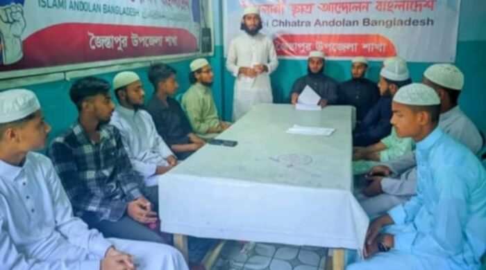ইসলামী ছাত্র আন্দোলন বাংলাদেশ জৈন্তাপুর থানা শাখার পূর্ণাঙ্গ কমিটির শপথ গ্রহণ অনুষ্ঠিত। ০৩ এপ্রিল ২০২৫ ইসায়ী বৃহস্পতিবার বিকাল ৪’টায় থানা সভাপতি হাঃ মুহাম্মাদ জাবির এর সভাপতিত্বে ও সাধারণ সম্পাদক এনামুল