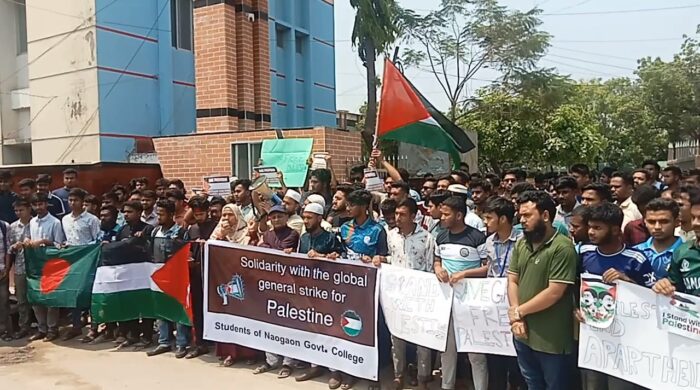 ফিলিস্তিনের গাজা উপত্তকায় ইসরায়েলের গণহত্যা ও দখলদারিত্বের প্রতিবাদে এবং গ্লোবাল স্ট্রাইক ফর গাজার সমর্থনে নওগাঁ সরকারি কলেজ কাম্পাসে বিক্ষোভ করেছে সর্বস্তরের ছাত্র-জনতা। বিক্ষোভ থেকে বিভিন্ন ধরনের প্রতিবাদী ব্যানার ও ফেস্টুন আরোও...
